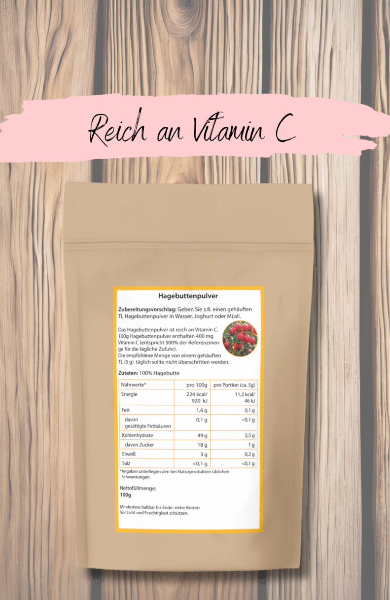 Fein vermahlene ganze Hagebutten aus Wildsammlungen.